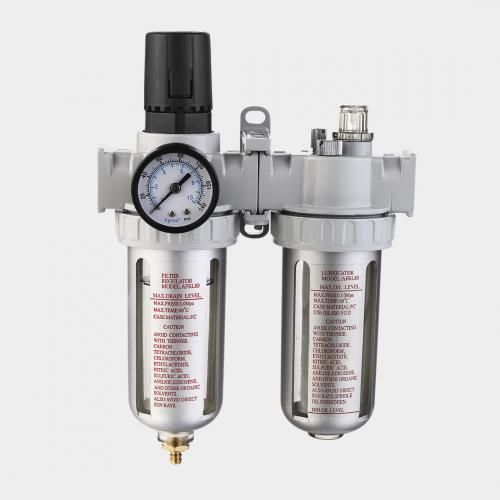 Фильтр для очистки воздуха с регулятором давления, манометром и лубрикатором. Подготавливает воздушную смесь для работы с пневматическим инструментом.