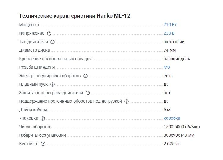 Машинка полировальная HANKO ML-12 электрическая малогабаритная D75мм
