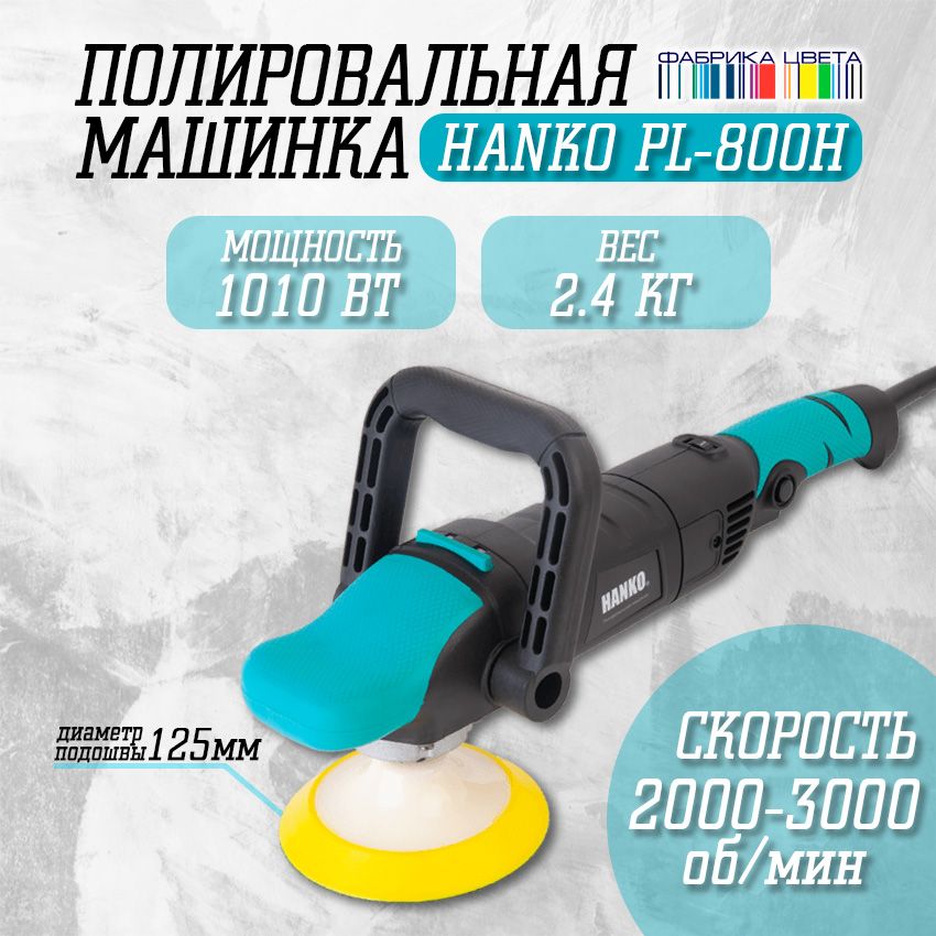 Угловая электрическая полировальная машинка с вращательным типом движения HANKO PL-800H. Легкая, малогабаритная машинка для полировки любой поверхности, даже большой площади. Максимально облегчает процесс полирования в неудобных положениях на наклонных и вертикальных плоскостях. Машинка оснащена многофункциональной электроникой, которая обеспечивает регулирование оборотов, защиту от перегрузок и плавный запуск, исключающий потерю полировальной пасты. Наличие 2-х ручек (скоба и боковая) дает возможность максимально настроить машинку для всех видов работ.