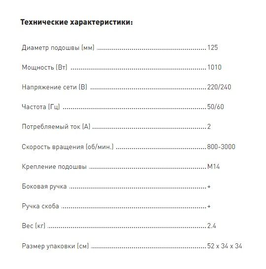 машинка, подошва, ключ для подошвы, основная «П» образная ручка-держатель, боковая ручка-держатель, комплект щёток двигателя, пластиковые болты-заглушки, инструкция по эксплуатации.