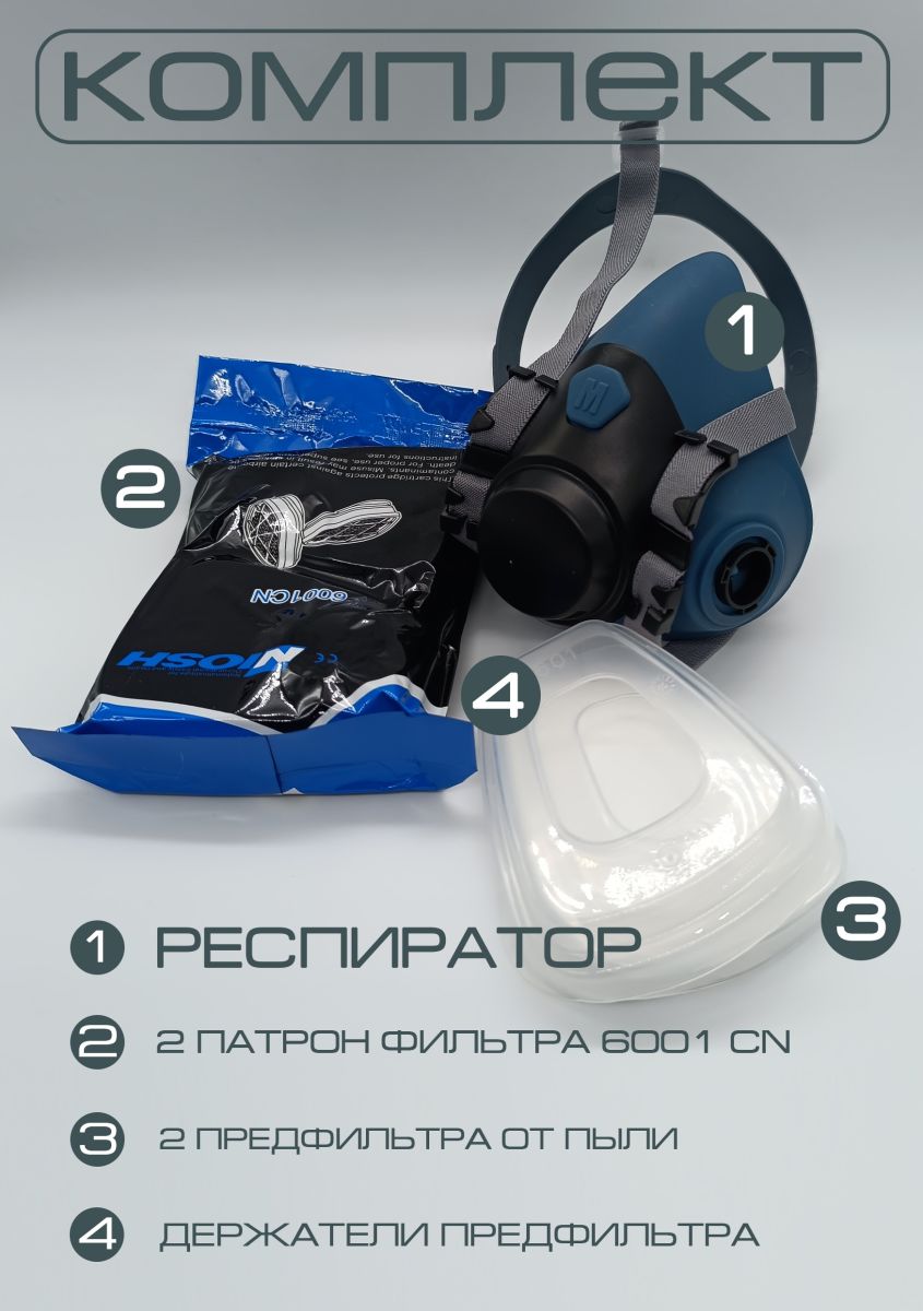 Полумаска средняя 7502 полный комплект (АНАЛОГ 3М)